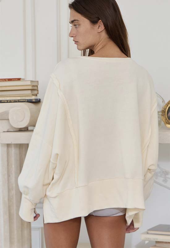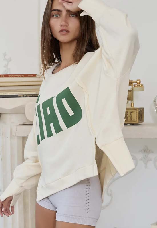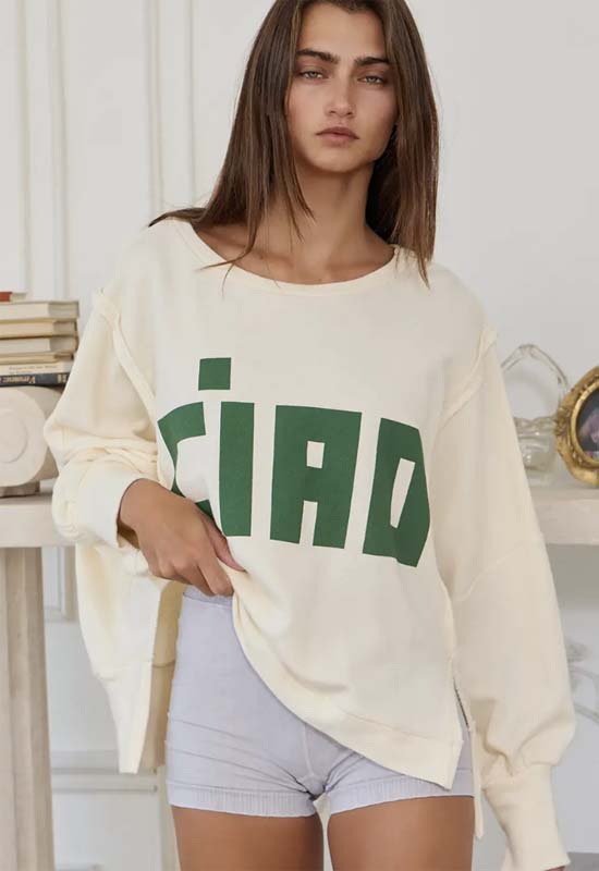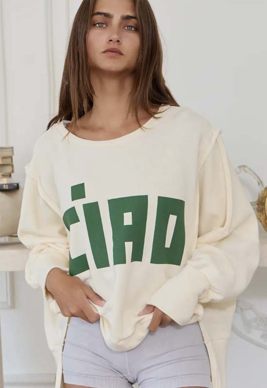 Elevate your casual wardrobe with the Ciao Raw Edge Terry Top in Cream Green. Crafted from soft terry fabric, this top offers both comfort and a relaxed fit, perfect for everyday wear. Its unique raw edge detailing adds an effortless, stylish twist to your look. Ideal for layering or wearing solo, this top brings a fresh pop of subtle color with a cozy feel you'll appreciate all day long.