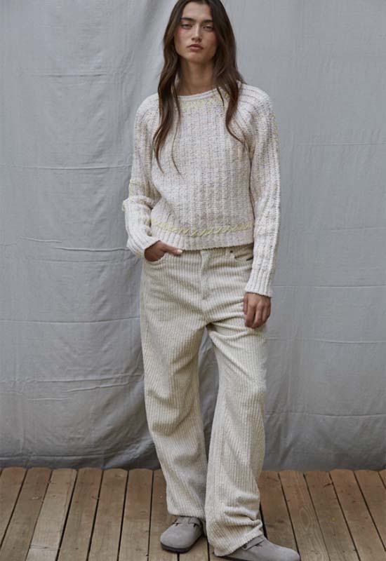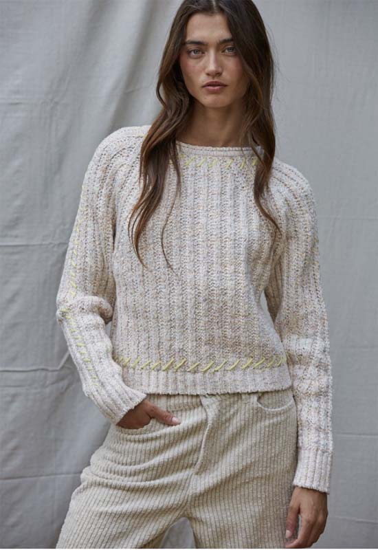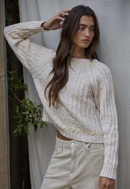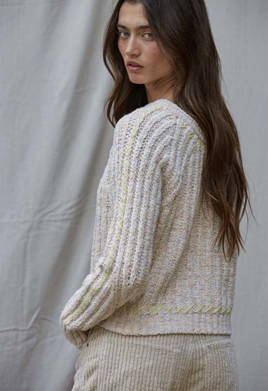 Contrast Stitch Knit Sweater - Oatmeal