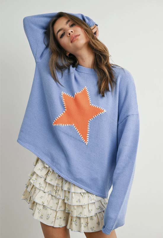 Embrace bold style and cozy comfort with the Star Sweater in Blue Orange. Featuring a vibrant mix of deep blue and energetic orange hues, this sweater effortlessly elevates your casual wardrobe. Soft to the touch and designed for a comfortable fit, it’s perfect for layering on chilly days or making a statement on cool evenings. Add a splash of color and warmth that keeps you looking sharp and feeling great wherever you go.