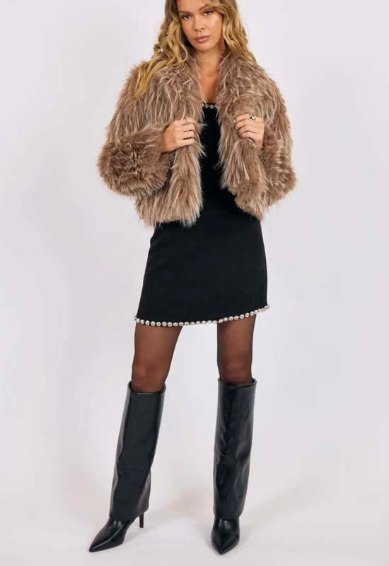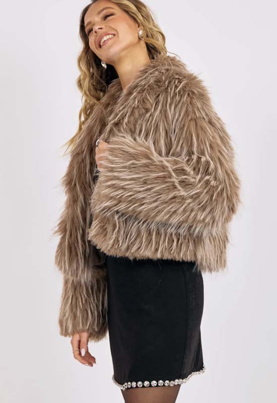 Sage the Label - Ladylike Energy Two-Tone Faux Fur Jacket Taupe