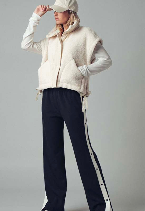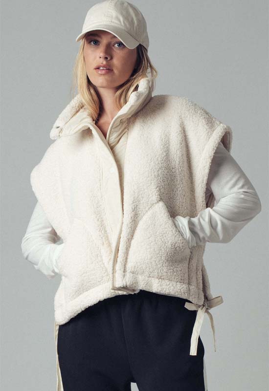Stay cozy and stylish with the Quilted Sherpa Collar Vest in Ivory. Its soft sherpa collar adds warmth and a touch of luxury while the lightweight quilted design ensures comfortable layering. Perfect for chilly days, this vest blends practicality with classic elegance, making it your go-to piece for effortless cool-weather outfits.