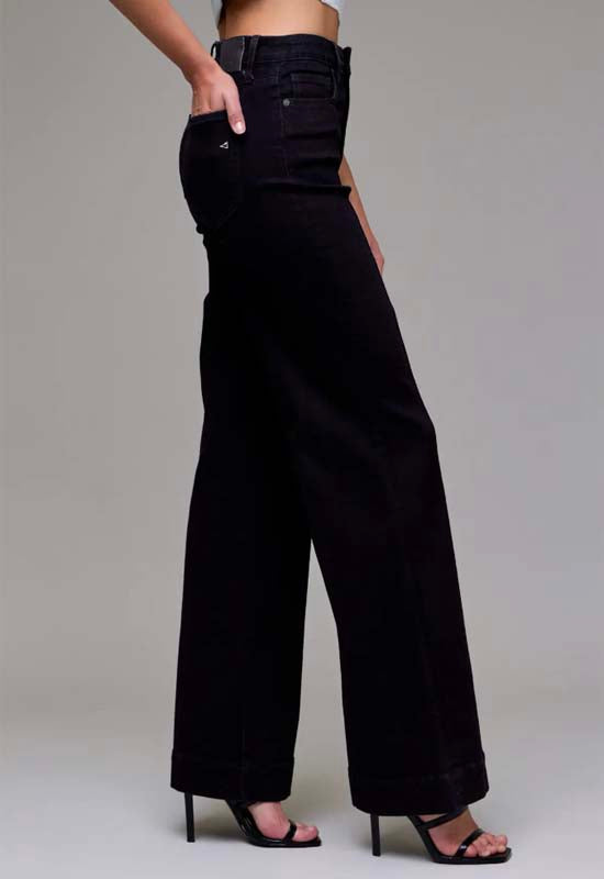 Hidden - Happi High Rise Comfort Flare Pintuck Jean Black