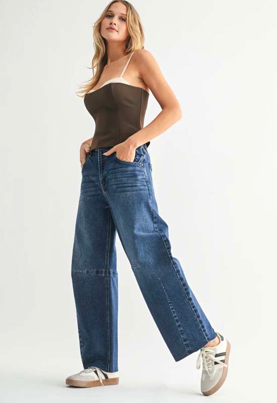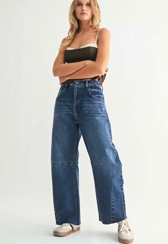 Just Black - Barrel Jean with Seams Dark Denim