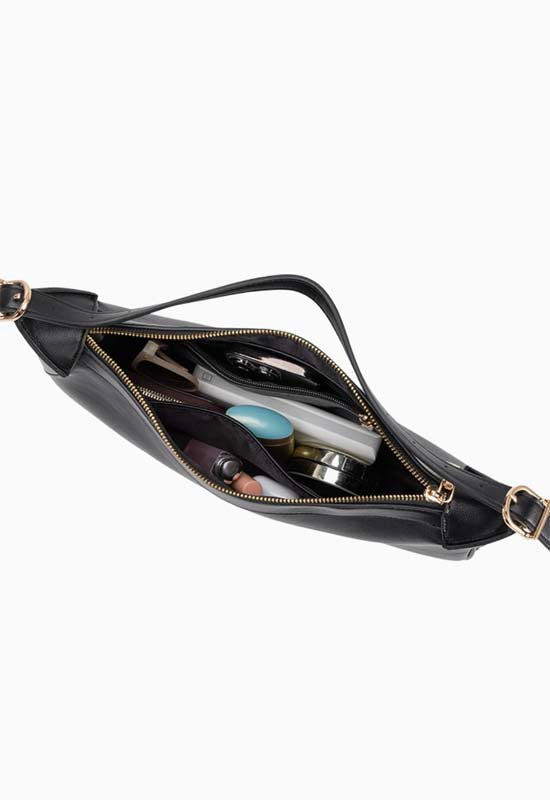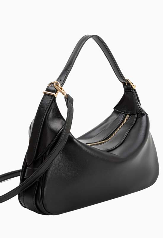Unleash your bold and daring side with the Melie Bianco Nicolette Shoulder Bag. This sleek black bag boasts a spacious design and convenient shoulder strap, perfect for all your adventures. Take on the world in style with this must-have accessory!