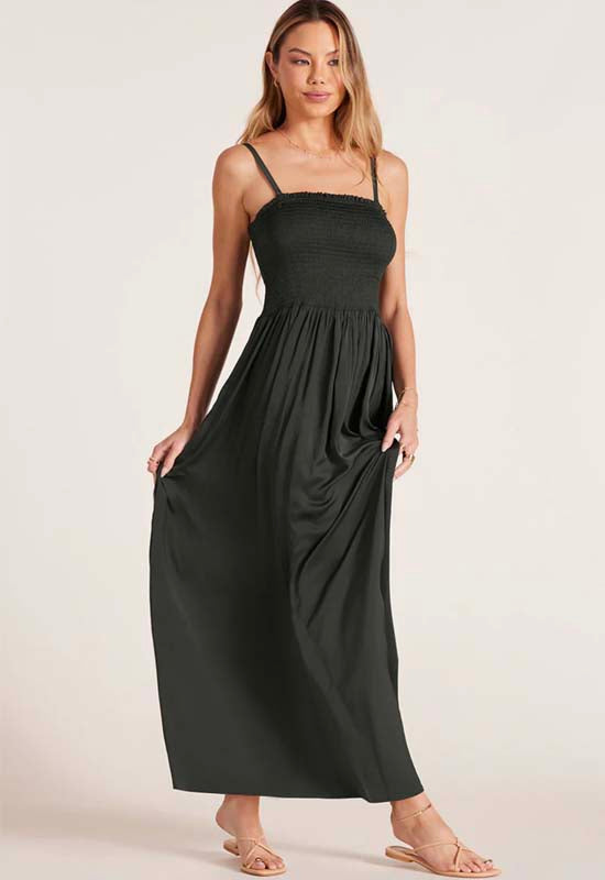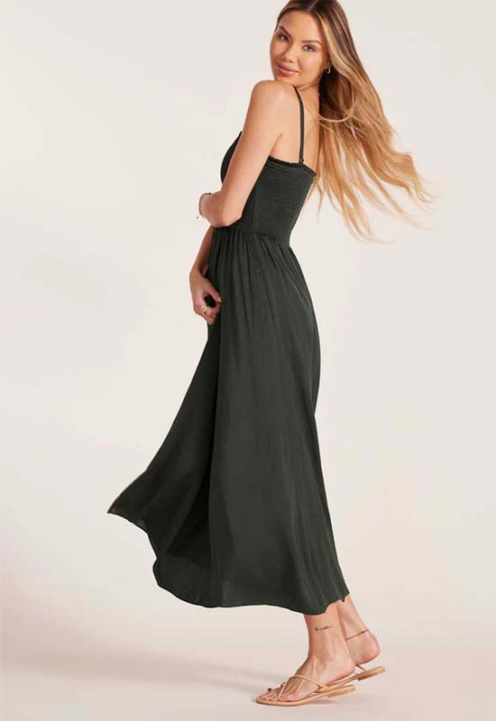 Elevate your wardrobe with the Bobi Smocked Maxi Dress in Army. This flowing maxi dress features a comfortable smocked bodice that flatters every figure while providing a secure fit. Its rich army green hue adds a touch of sophistication, perfect for both casual outings and special occasions. Lightweight and breathable, it ensures all-day comfort without sacrificing style. Make a statement effortlessly with this versatile dress that combines elegance and ease.