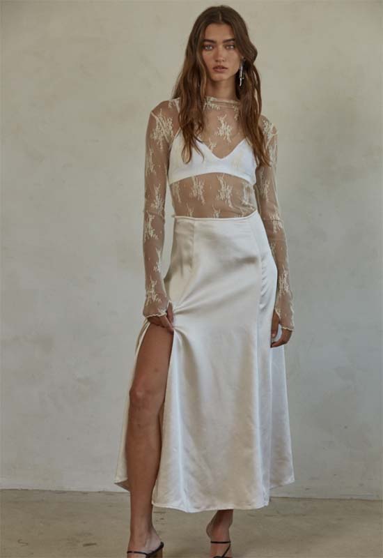Elevate your wardrobe with the Knit Jacquard Lace Long Sleeve Top in Ivory. This elegant piece combines intricate jacquard knit with delicate lace detailing, offering a sophisticated texture and timeless style. Its long sleeves provide comfortable coverage, making it perfect for both day and evening wear. The soft ivory hue complements any outfit, adding a touch of refined femininity. Ideal for layering or wearing on its own, this top effortlessly enhances your look with subtle elegance.