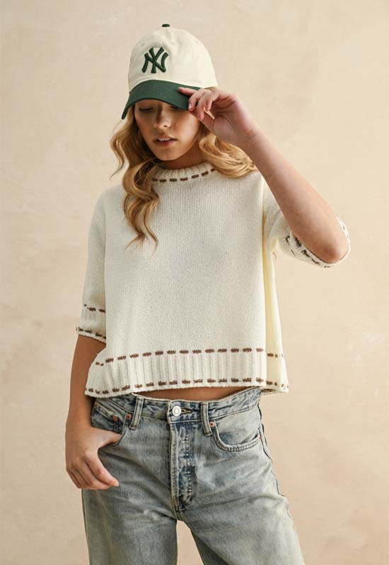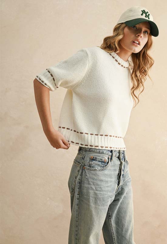Elevate your casual wardrobe with the Stitch Effect Detail Top in White Brown. This stylish top features subtle stitch accents that add texture and depth, making it perfect for everyday wear or effortless layering. The neutral tones blend easily with various outfits, enhancing your look with a touch of refined detail. Comfortable and versatile, it’s an essential piece that combines understated design with modern appeal.