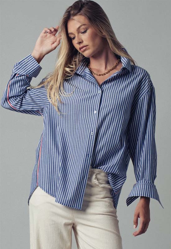 Elevate your wardrobe with the Stripe Twill Detail Button Down Shirt in Navy. Crafted for both comfort and style, its subtle stripe pattern adds a modern twist to classic twill fabric. Perfect for casual days or smart layering, this shirt offers a refined look that transitions effortlessly from office meetings to weekend outings. Durable and breathable, it ensures all-day wearability while enhancing your smart-casual appeal. Make a versatile addition to your collection with this timeless navy button-down.